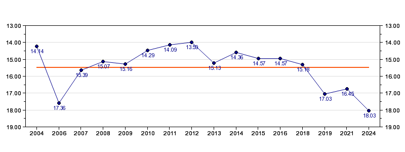 Antall deltagelser16 (i perioden 2004 - 2024)