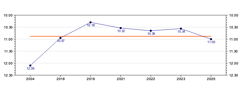 Antall deltagelser7 (i perioden 2004 - 2025)