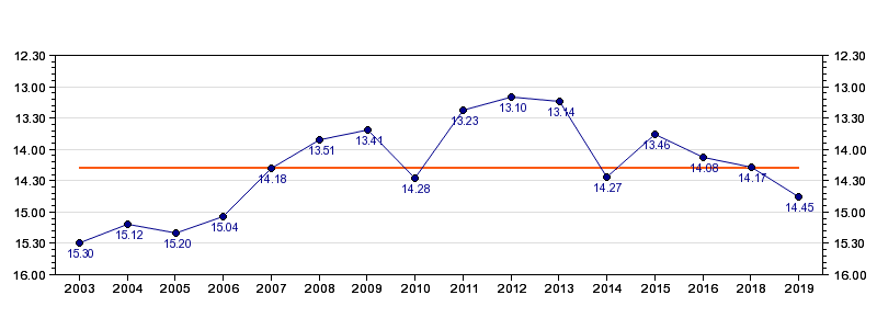Antall deltagelser16 (i perioden 2003 - 2019)