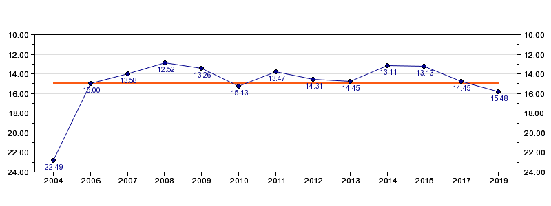 Antall deltagelser13 (i perioden 2004 - 2019)