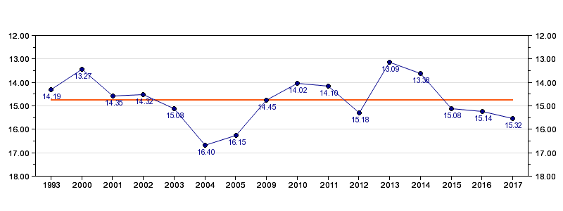 Antall deltagelser16 (i perioden 1993 - 2017)