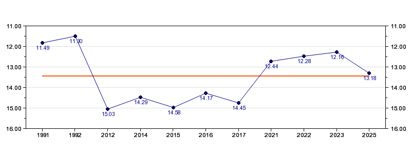 Antall deltagelser11 (i perioden 1991 - 2025)