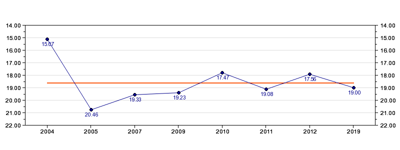Antall deltagelser8 (i perioden 2004 - 2019)