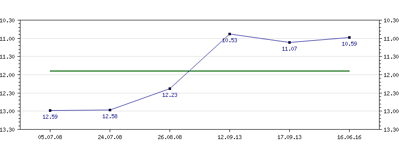 | 05.07.2008 | 12.59 | 24.07.2008 | 12.58 | 26.08.2008 | 12.23 | 12.09.2013 | 10.53 | 17.09.2013 | 11.07 | 16.06.2016 | 10.59 |