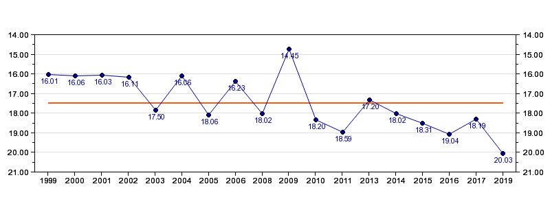 | Antall deltagelser | 18 (i perioden 1999 - 2019) |