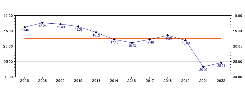 Antall deltagelser12 (i perioden 2006 - 2022)