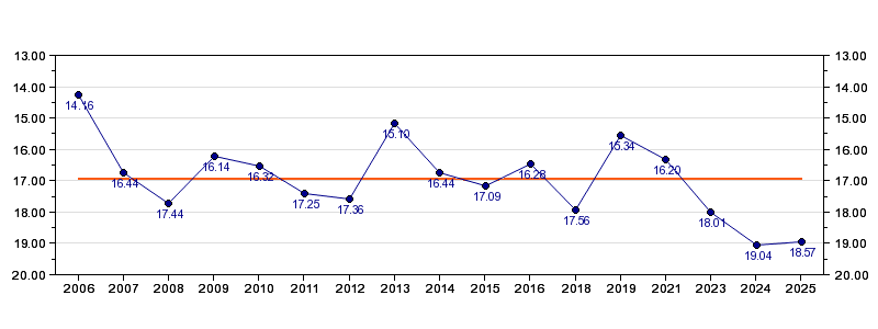 Antall deltagelser17 (i perioden 2006 - 2025)