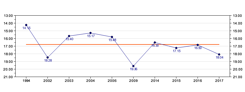 | Antall deltagelser | 10 (i perioden 1994 - 2017) |
