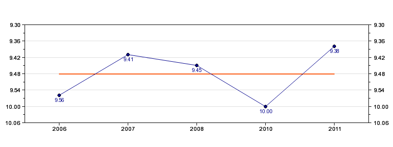 | Forrige tid | 09.38 (2011) |