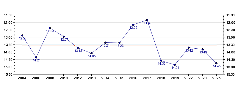 | 2025 | Kalkulator | 14:45 (1226 m/h) | 02:28 (1308 m/h, 106 %) | 06:54 (04:26, 1241 m/h, 101 %) | 12:45 (05:51, 1172 m/h, 95 %) | 14:45 (02:00, 1248 m/h, 101 %) |