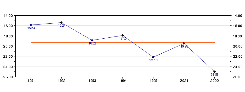 Antall deltagelser7 (i perioden 1991 - 2022)