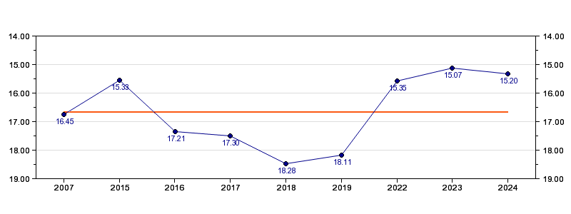Antall deltagelser9 (i perioden 2007 - 2024)