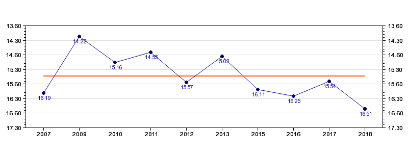 | Forrige tid | 16.51 (2018) |