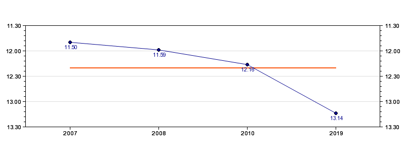 | Forrige tid | 13.14 (2019) |