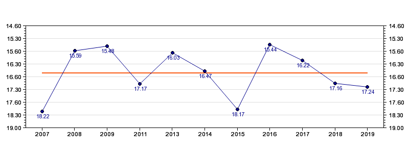 | Antall deltagelser | 11 (i perioden 2007 - 2019) |