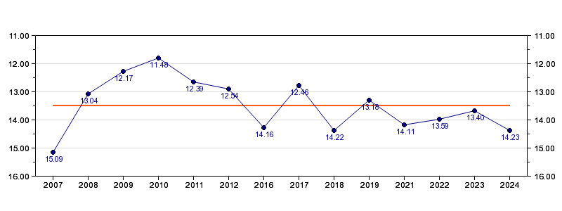 | 21.02.2020 | 14.29 | 18.06.2021 | 13.51 | 11.03.2022 | 15.15 | 22.04.2022 | 15.15 | 17.06.2022 | 14.24 | 19.05.2023 | 15.12 |