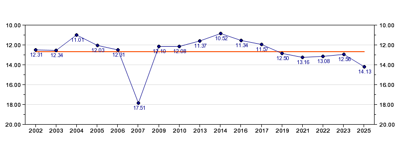 | 2025 | Kalkulator | 14:13 (1272 m/h) | 02:25 (1335 m/h, 104 %) | 06:46 (04:21, 1264 m/h, 99 %) | 12:28 (05:42, 1203 m/h, 94 %) | 14:13 (01:45, 1426 m/h, 112 %) |