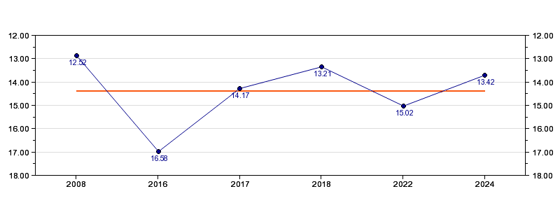 | Antall deltagelser | 6 (i perioden 2008 - 2024) |