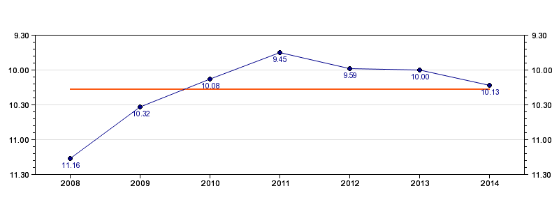 | Forrige tid | 10.13 (2014) |