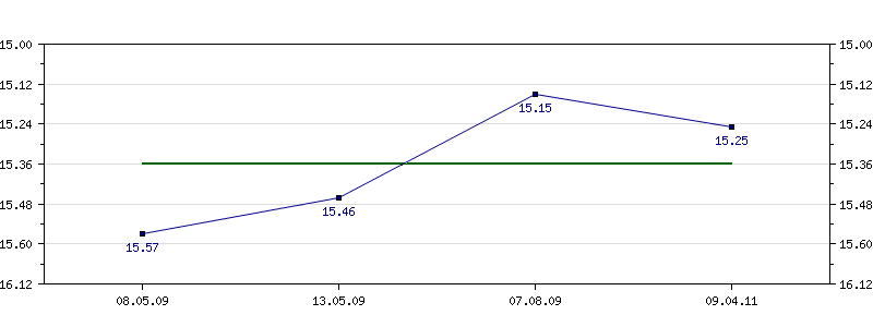 | 08.05.2009 | 15.57 | 13.05.2009 | 15.46 | 07.08.2009 | 15.15 | 09.04.2011 | 15.25 |