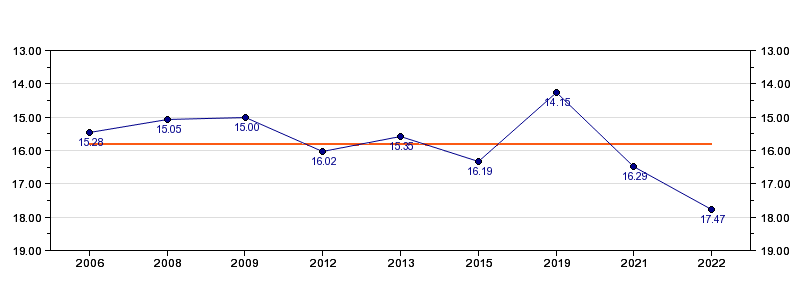 Antall deltagelser9 (i perioden 2006 - 2022)