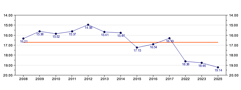 Antall deltagelser13 (i perioden 2008 - 2025)