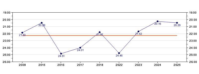 | Antall deltagelser | 9 (i perioden 2008 - 2025) |