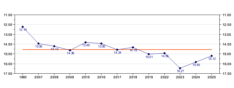Antall deltagelser13 (i perioden 1993 - 2025)