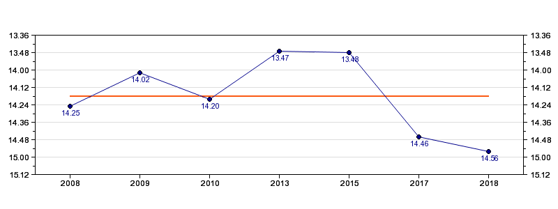 | Forrige tid | 14.56 (2018) |