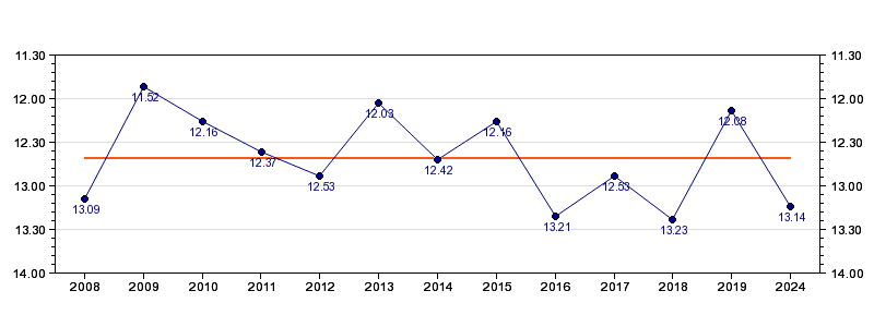 Antall deltagelser13 (i perioden 2008 - 2024)
