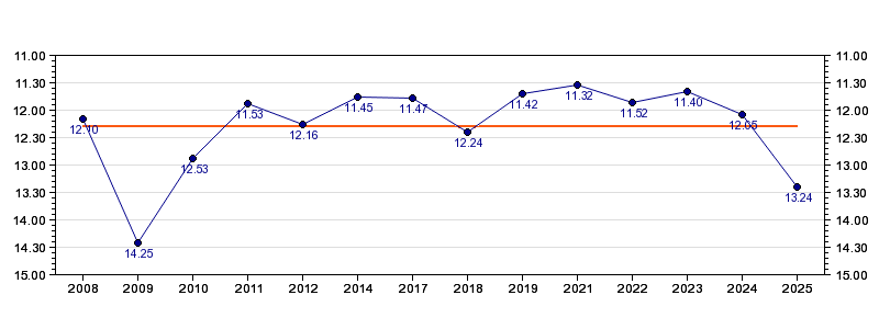 | 2025 | Kalkulator | 13:24 (1349 m/h) | 02:38 (1225 m/h, 90 %) | 06:43 (04:05, 1347 m/h, 99 %) | 11:53 (05:10, 1327 m/h, 98 %) | 13:24 (01:31, 1645 m/h, 121 %) |