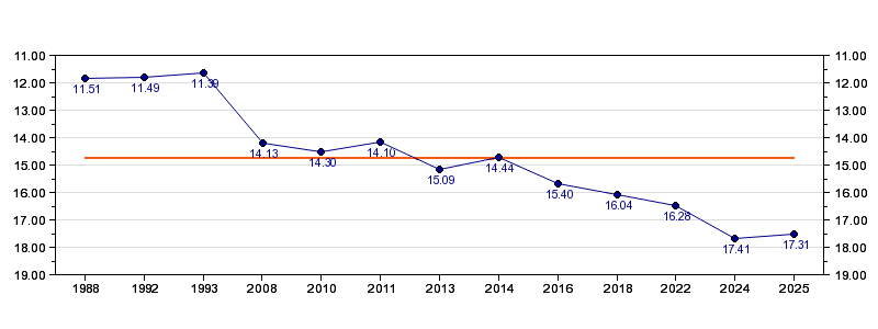 Antall deltagelser13 (i perioden 1988 - 2025)
