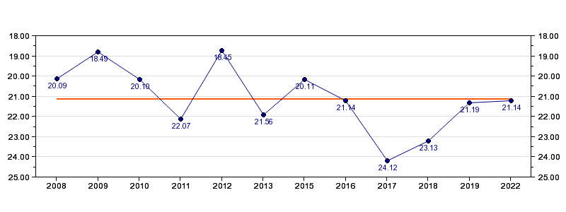 Antall deltagelser12 (i perioden 2008 - 2022)
