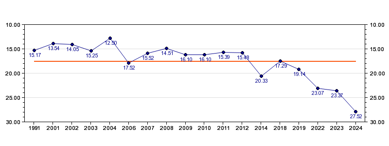 Antall deltagelser18 (i perioden 1991 - 2024)