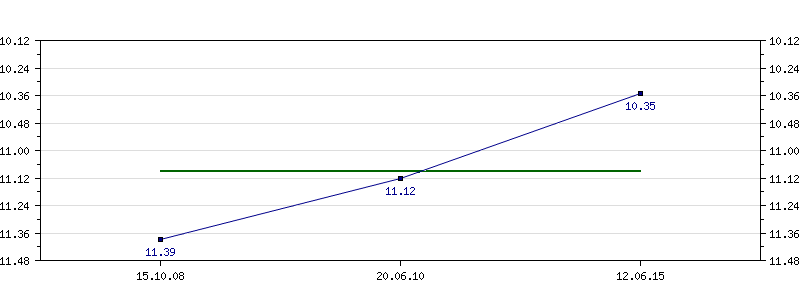 | 15.10.2008 | 11.39 | 20.06.2010 | 11.12 | 12.06.2015 | 10.35 |