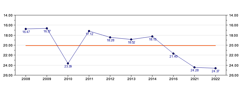 | Forrige tid | 24.37 (2022) |