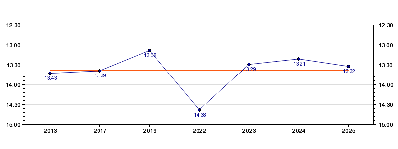Antall deltagelser7 (i perioden 2013 - 2025)