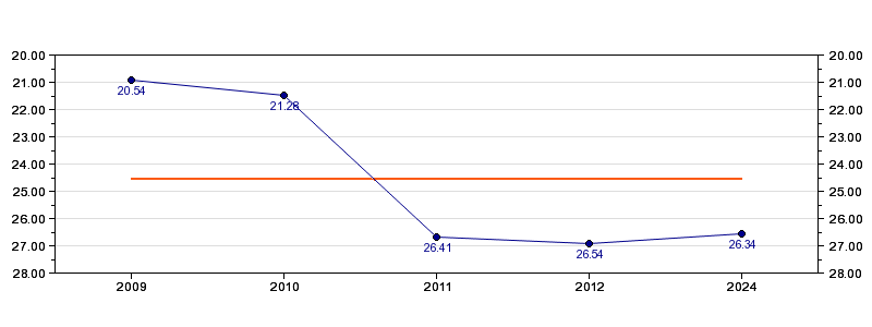| Forrige tid | 26.34 (2024) |