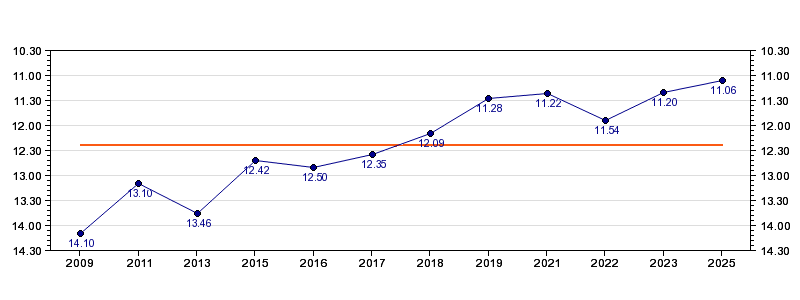 Antall deltagelser12 (i perioden 2009 - 2025)