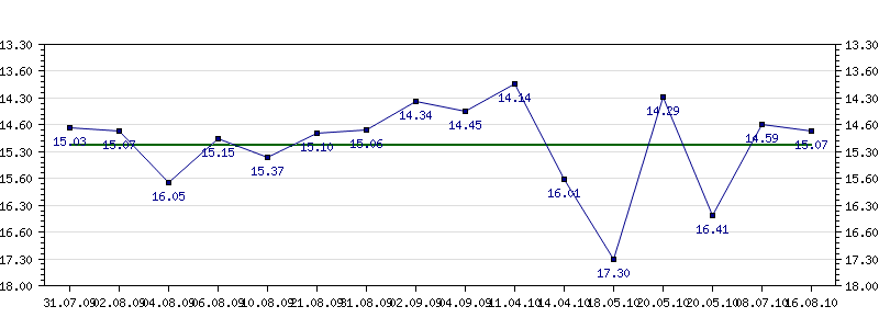 | 31.07.2009 | 15.03 | 02.08.2009 | 15.07 | 04.08.2009 | 16.05 | 06.08.2009 | 15.15 | 10.08.2009 | 15.37 | 21.08.2009 | 15.10 |