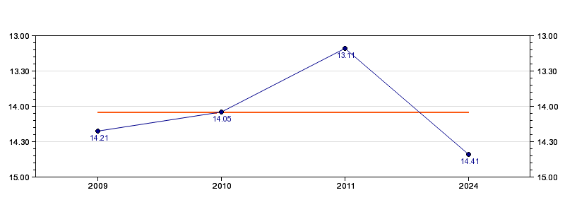 2009Kalkulator14:21 (1260 m/h)02:23 (1354 m/h, 107 %)06:58 (04:35, 1200 m/h, 95 %)12:36 (05:38, 1217 m/h, 96 %)14:21 (01:45, 1426 m/h, 113 %)