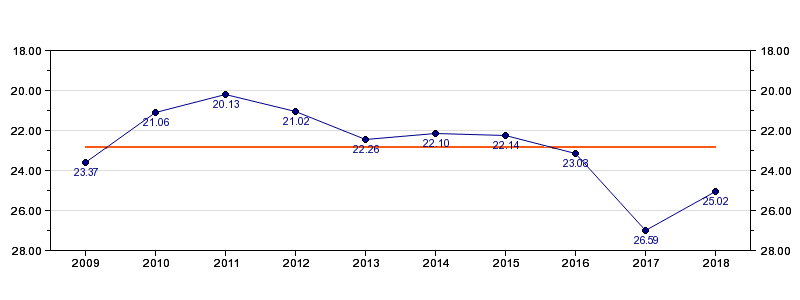 2018Kalkulator25:02 (722 m/h)04:07 (784 m/h, 108 %)11:21 (07:14, 760 m/h, 105 %)21:35 (10:14, 670 m/h, 92 %)25:02 (03:27, 723 m/h, 100 %)