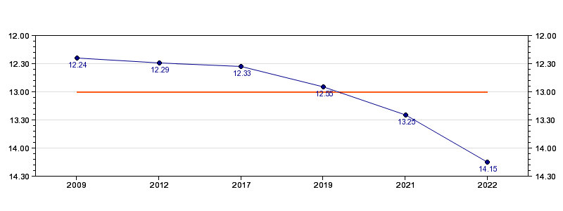 | Forrige tid | 14.15 (2022) |