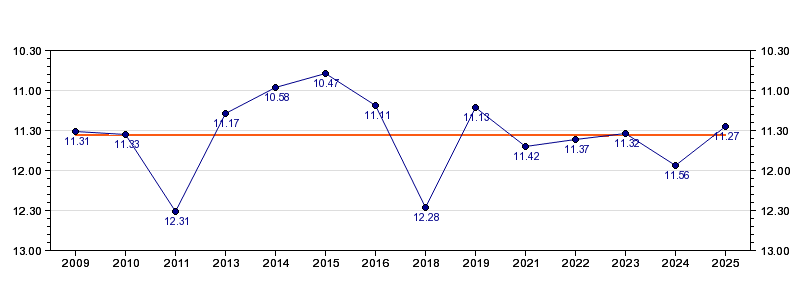Antall deltagelser14 (i perioden 2009 - 2025)
