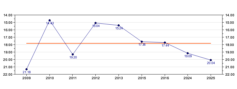 Antall deltagelser9 (i perioden 2009 - 2025)