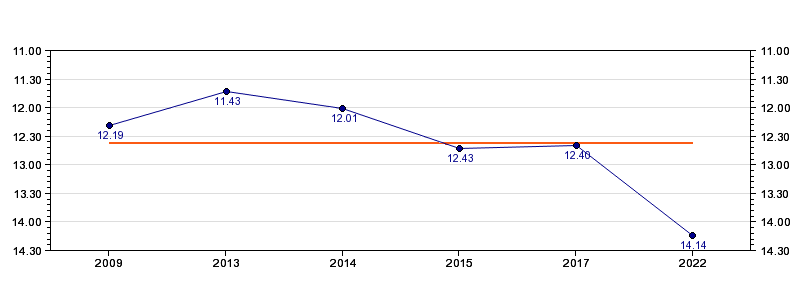 | Forrige tid | 14.14 (2022) |
