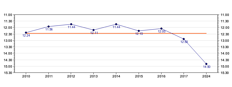 | Forrige tid | 14.50 (2024) |