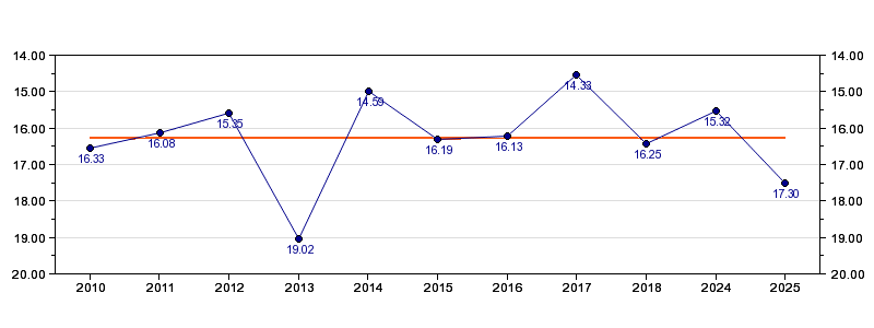 | Forrige tid | 17.30 (2025) |