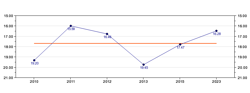 | Forrige tid | 16.28 (2023) |