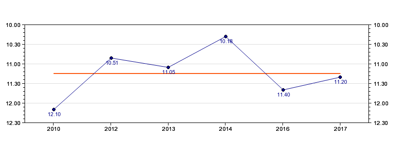 | Forrige tid | 11.20 (2017) |